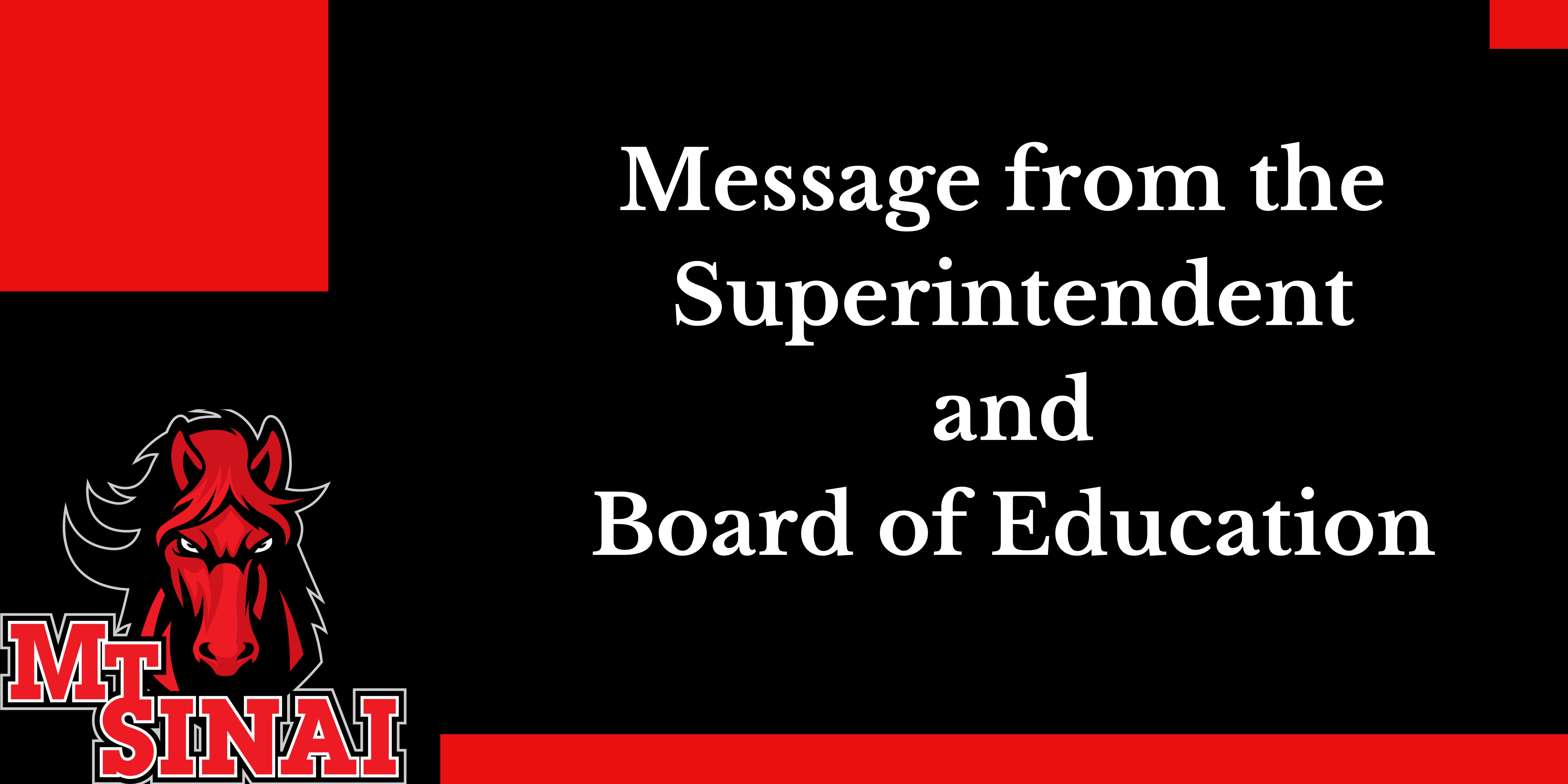 We are reaching out to inform you of an important development that could significantly impact the future of our school district. Recently, the New York State Education Department (NYSED) introduced a Regionalization Plan that has the potential to alter the structure and identity of our district. In response, the Mount Sinai Board of Education and I have drafted a letter of concern and opposition, which we have sent to the Assistant Commissioner of Education, expressing our serious reservations about the plan. You can view this letter HERE.
